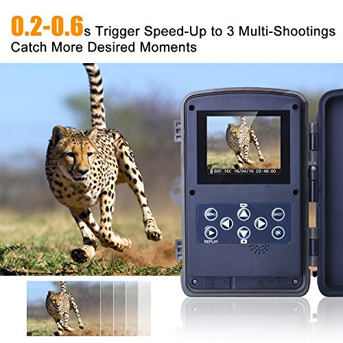 - Distancia más larga del disparador: Puede ser accionada incluso la distancia es 82ft en la noche, y la distancia de visión del IR 65.6 pies. En el día, la distancia de disparo hasta 164 pies. La distancia no será un problema en absoluto.