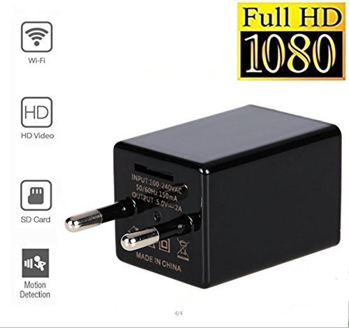 - ✓ SPY CAMERA WiFi, IP, P2P, DVR hided in AC Adapter for real time view. MULTI-FUNCTIONAL: video recording, photographing, motion detection alarm, and the most important REAL-TIME monitoring | Can work with or without a network connection | Real-time audio & video recording - built-in microphone | Support PC, Computer, Smartphone and Tablet APP Remote View and Control | Recordings can also be saved on memory card up to 32 GB.