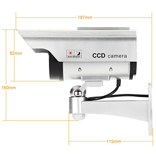 - Equipada con una luz LED roja intermitente y una cubierta impermeable, la cámara simulada proporciona un efecto disuasorio eficaz